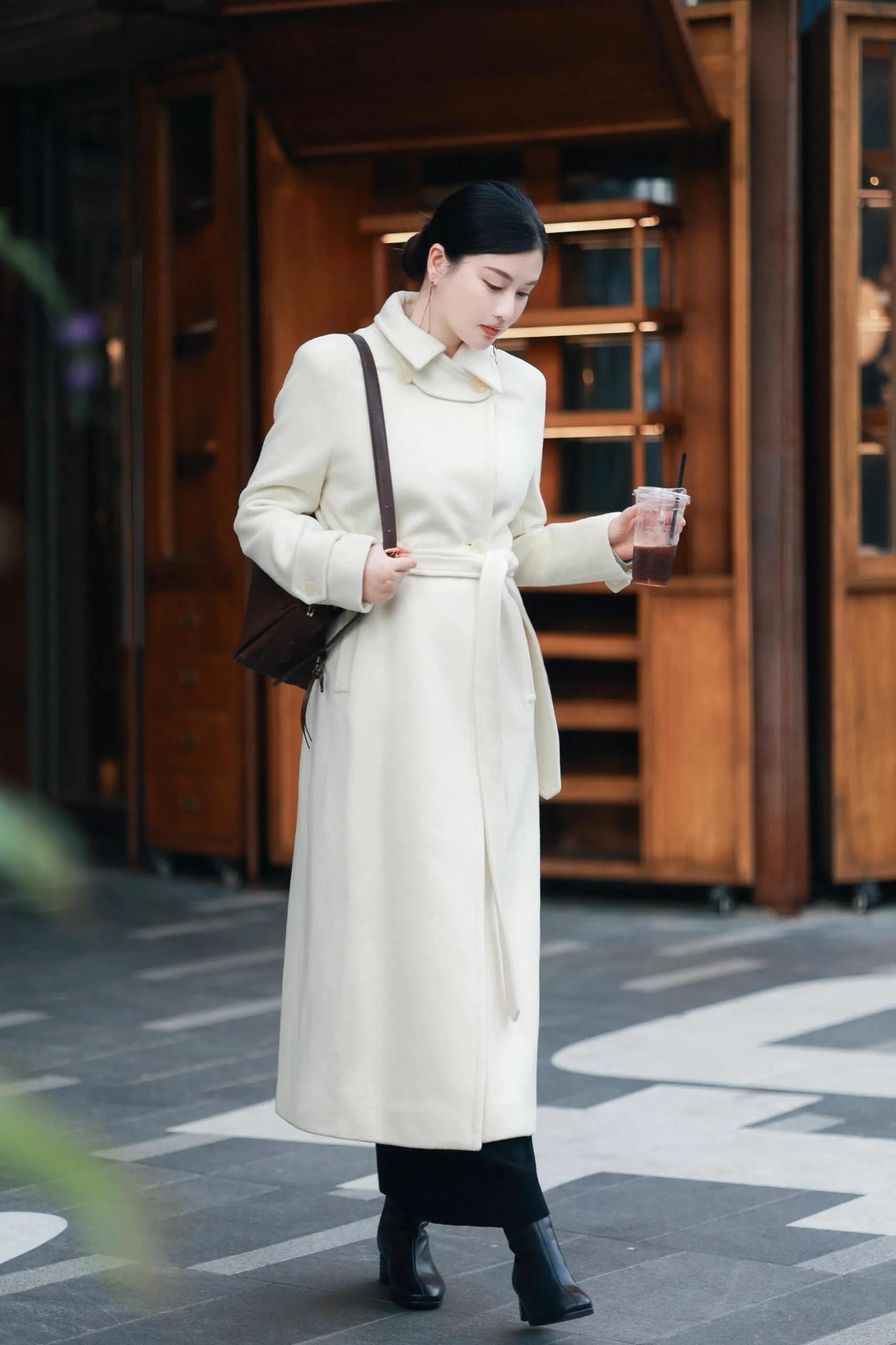 首先我们想要提升腰线,肯定是要选那种拥有高腰收腰设计版型的大衣外套,甚至是 X 型的大衣,自带腰带,穿的时候系起来还能勒住小蛮腰,形成高腰线。如果没有收腰,高腰设计的穿在身上很呆板,还很容易压个子。