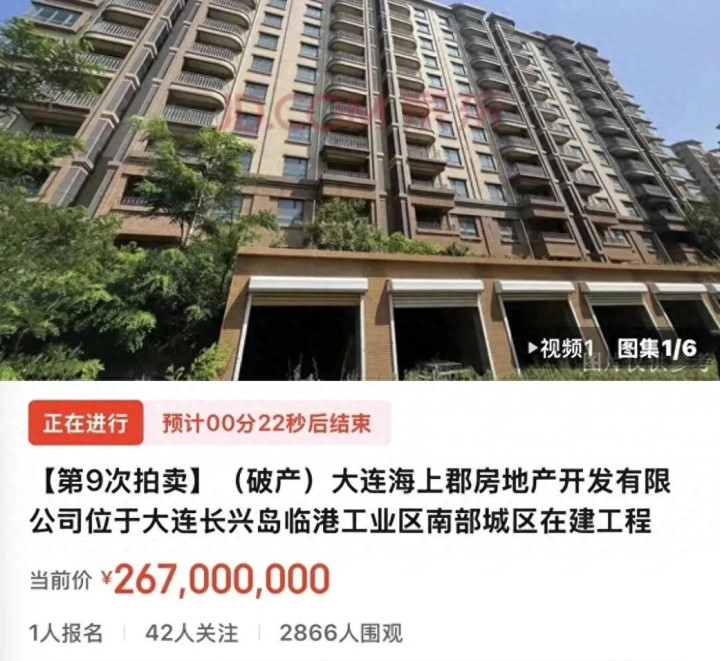 12月6日,长兴岛“海上郡”第9次拍卖落槌!大连力诚置业有限公司以2.67亿元底价竞得。